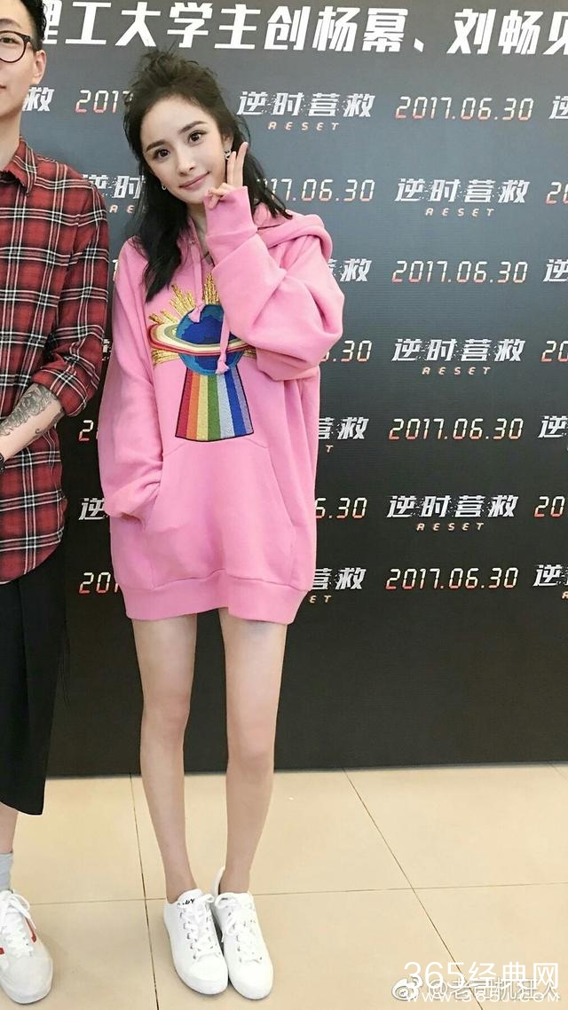 每次到学校宣传的大幂幂都是穿的非常青春靓丽。粉红色的卫衣搭配半丸子头简直就是美少女本人了!