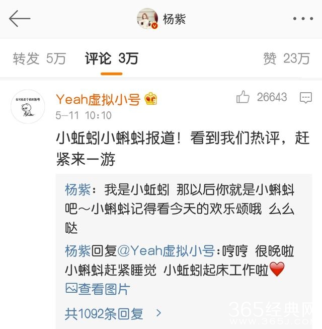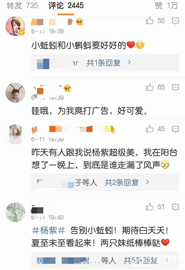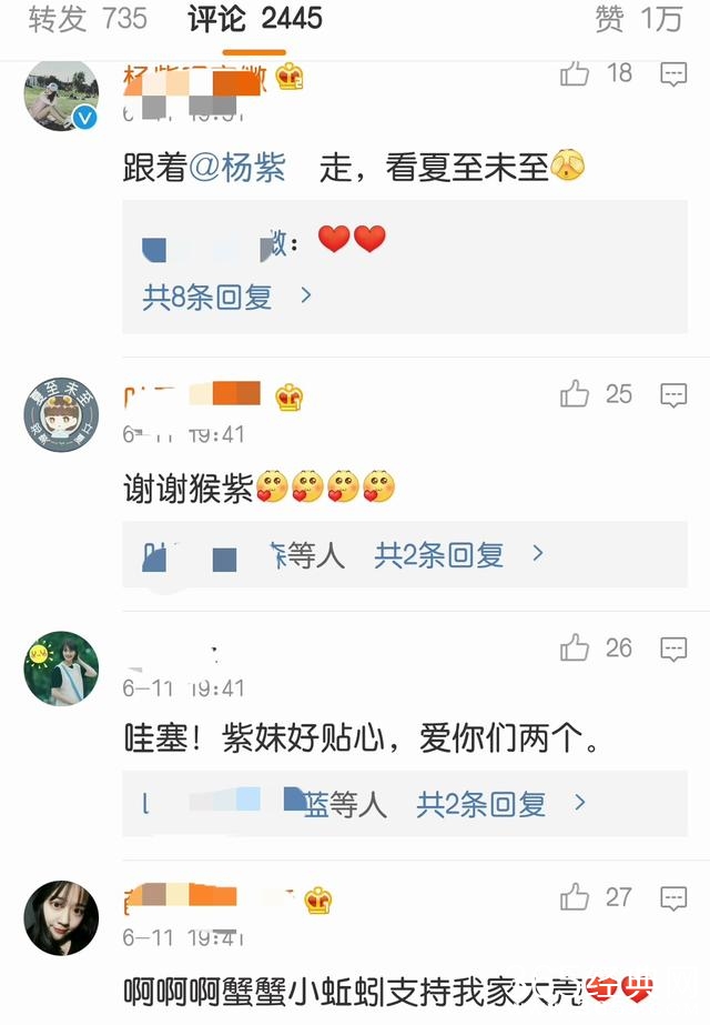 三个人用了三个表情,倒是打打广告语呀。而在这时,杨紫的微博被爽粉占领了。原因在于昨天欢乐颂已结束,杨紫为郑爽的电视剧打广告呢。