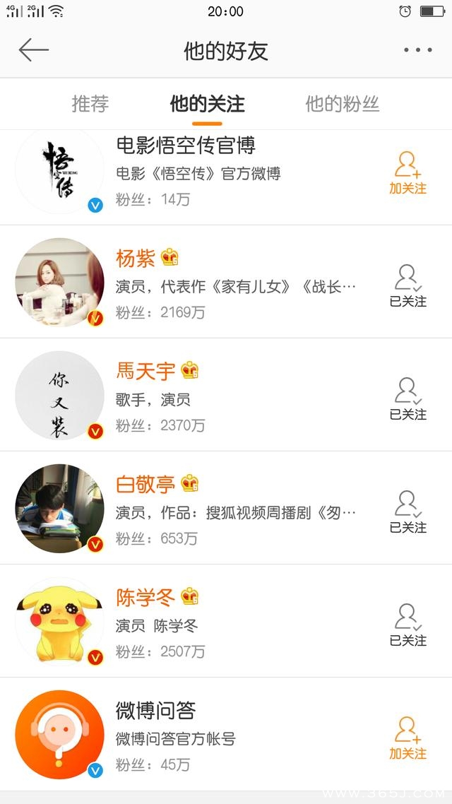 两人的感情由此建立。而在郑爽的微博里,她关注的人里可以看出,真的把杨紫当朋友了。