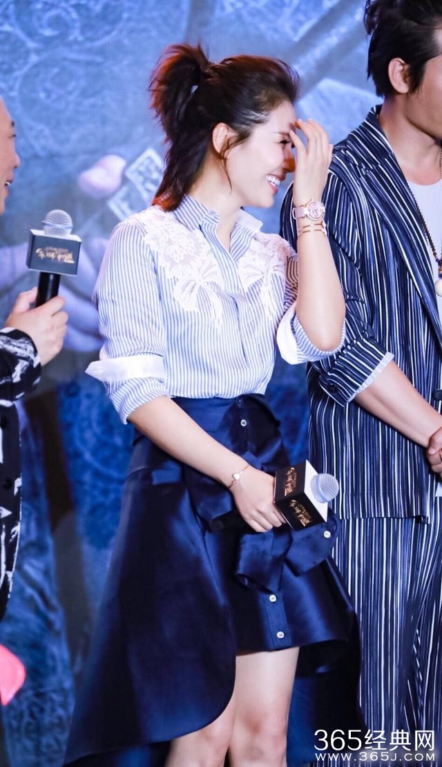 刘涛上身着条纹绣花衬衫,在活动上她笑得好开心,这件衣服确实好适合她啊!确实美美滴!皮肤也显得又白又嫩。