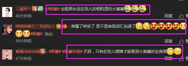 网友看照说:全脸照永远在别人的相机里的大幂幂,美爆了帅呆了,是不是表扬词汇俗透了。天呀,只有在别人微博才能看到大美幂的全身照!