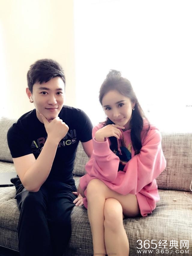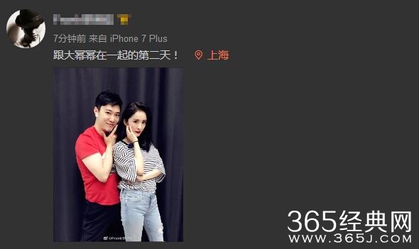 该男子爆照说:跟大幂幂在一起的第一天!,照中杨幂穿粉色长款卫衣,身材很不错,依然是那么美,就放心了,哈哈。