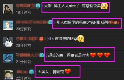 网友看照说:天啦,博主人太nice了,幂幂超级美。别人博里的杨幂之第N张系列,超美的幂,杨幂就是时尚。