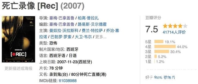 目前豆瓣评分7.5分,好于92%的恐怖片。