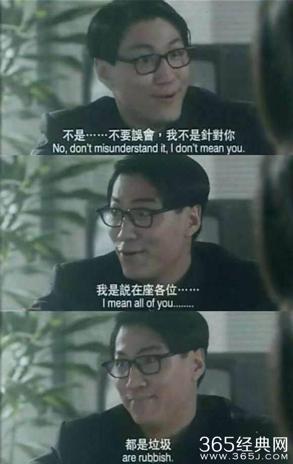 出自周星驰电影《破坏之王》,断水流大师兄霸气的台词:我是说在座的各位,都是垃圾。