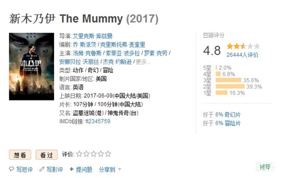 宝宝们期待已久的好莱坞大片《新木乃伊》扑街了!