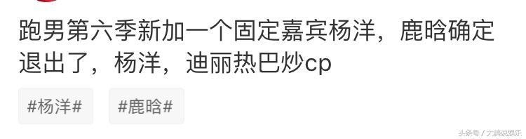 迪丽热巴之前退出《跑男》的消息,已经刷了一波热度,现在有消息称迪丽热巴获品牌商力捧,不会退出跑男,鹿晗确定退出,“陆地”CP也就不存在了,将由另一位当红流量小生杨洋与迪丽热巴组CP。