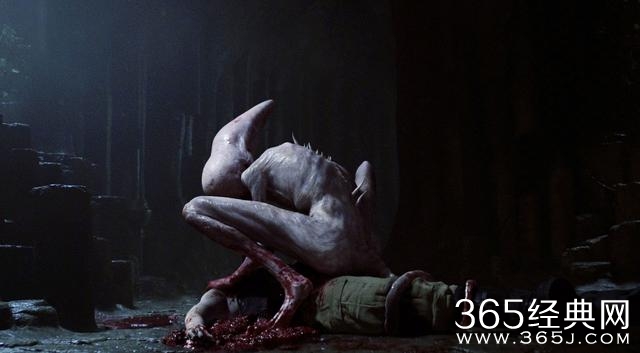 异形最可怕的是繁殖方式,这一部也会出现“抱脸虫”。法鲨饰演的大卫诱导“契约号”舰长进入洞穴,“抱脸虫”扑上舰长,以他为寄生宿主,异形将胚胎放进舰长食道,然后成长为幼小异形,接着撕开宿主的身体,破胸而出。