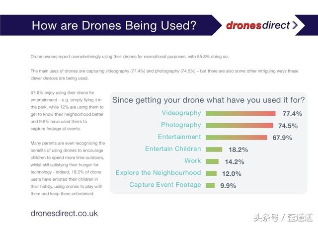 重要的是这份报告还显示,10%的用户加入了无人机俱乐部,8%的用户加入了专业无人机竞赛团队,而5.8%的用户和朋友参加业余无人机比赛。这说明面对这一新兴技术产品,用户更愿意选择以群体的形式参与活动,就更容易滋养无人机竞技的生长环境。