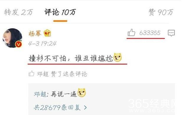一次,邓超在微博晒出一张模仿杨幂在机场表情服装和动作的照片,并艾特大幂幂,没想到杨幂直接怼了回去:撞衫不可怕,谁丑谁尴尬。“气得”邓超忙回嘴:再说一遍!