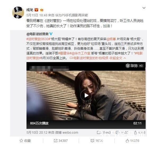 为此成龙转发了小视频,并说到:杨幂真的长大了!