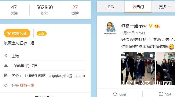 在看到虹桥一姐的微博,如今粉丝达到了近60万,成为了网红界的一员。但出名后的虹桥一姐似乎穿着打扮还是跟以前没有区别,走在街上很像路人。