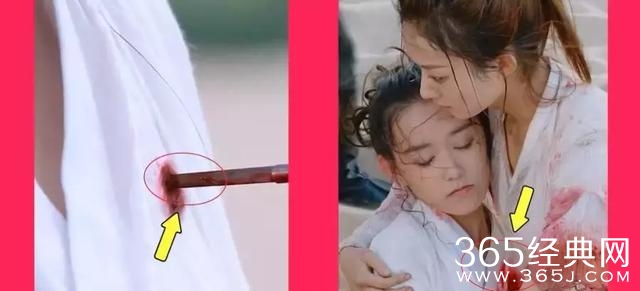 在游戏已经结束了之后,宇文怀不遵守游戏规则,把和楚乔一起的妹妹卷毛头给一箭射死了,大家注意看,此时的伤口是在胸前的,但是镜头一转,伤口的位置就变了,真的是尴尬症都犯了~