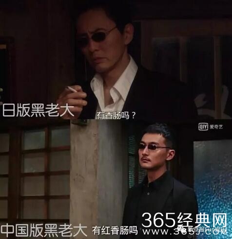 网友自制图片,吐槽日版里有“大哥”,中国版里也有,但气场完全不一样