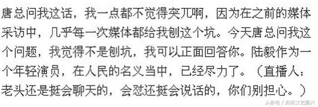 比如,被问到如何评价陆毅的演技时,他回答说:“陆毅做为一个年轻演员,在《人民的名义》中,已经尽力了。”