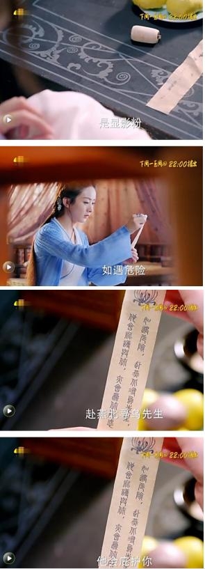 然后林更新给了赵丽颖显影粉,把显影粉撒在密函纸条上,就能看到了,赵丽颖照着做了,果然,木珠的秘密就此揭开,纸条上写着:如遇危险,赴燕北寻乌先生,他会庇佑你,亦会为你解惑。