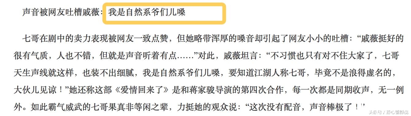 至于吃瓜群众们吐槽她的声音,她也毫不扭捏,说自己就是爷们儿嗓...2333...