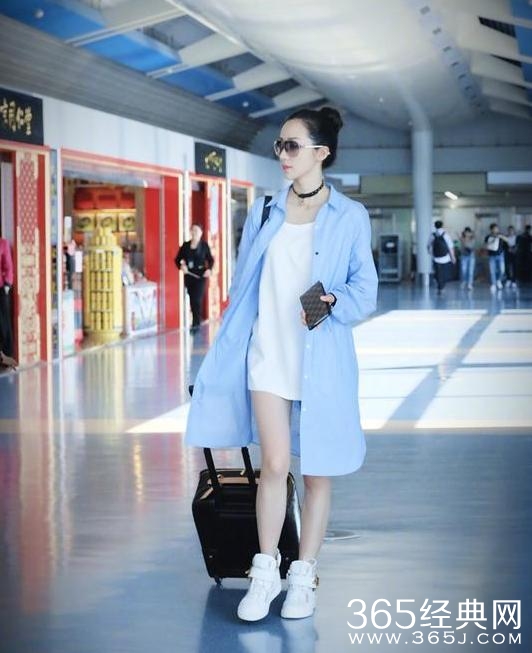 机场的休闲穿搭也是潮范十足。韩雪身穿oversize蓝色衬衫,内搭白色T恤,大秀美腿。让人不觉呼出:“清水出芙蓉,天然去雕饰”的诗句。