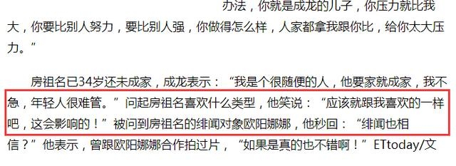 当被问到儿子房祖名喜欢什么类型,成龙大哥的回答真的很容易让人想歪啊,他说:应该就跟我喜欢的一样吧,这会影响的!
