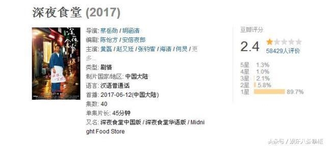 近日,由黄磊,吴昕,赵又廷等人主演的《深夜食堂》已经播出,就收获大批差评,口碑评分创中国电视剧史上新低。此剧全盘照搬日本高分美食剧集《深夜食堂》,不仅不做中国本土化的修改,而且演员在片中居然还穿和服,被批翻拍毫无诚意。