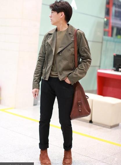 当日,靳东身穿军绿色的夹克上衣,军绿色的T恤搭配,黑色的休闲裤,棕色短靴,简直是帅的满屏。
