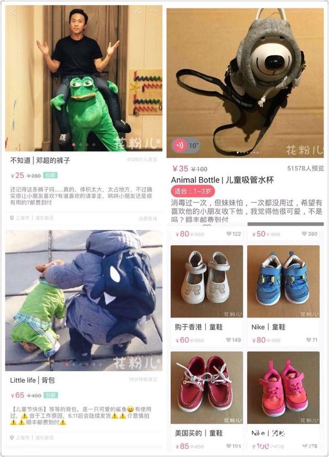 还有邓超被孙俪嫌弃华而不实的裤子只卖了25块钱、小花妹妹一次都没用过的水杯只卖35块钱、等等的书包只卖了65块钱啊,以及看起来还很新的孩子的鞋子价格都非常的平价,最关键的是有些还包邮啊