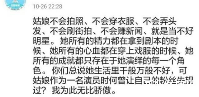 说的其实一点不错。不可否认舒畅是一个不错的演员,但要做一个大明星,达到外界所定义的“红”,远不止会演戏这么简单,老老实实演戏必定要放弃很多曝光的机会,而粉丝列举的这几方面恰恰也是成为大明星不可或缺的,再加上舒畅对事业也没那么多的野心,才造成了现在这个知名度很高,但热度很低的局面。