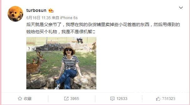 父亲节将至,16日孙俪在微博上表示“我想在我的杂货铺里卖掉些小花爸爸的东西,然后用得到的钱给他买个礼物”。