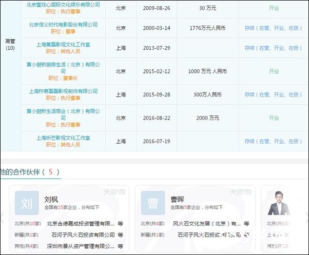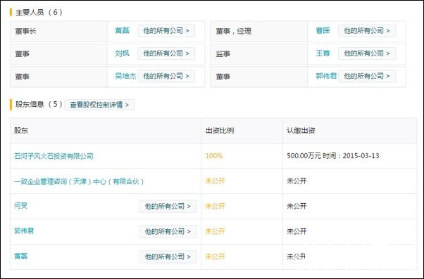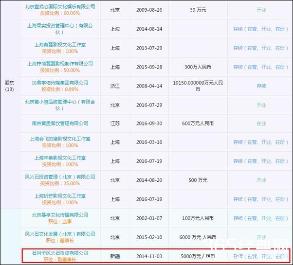 而事实上,黄磊早起是可以玩转娱乐圈半边天的幕后老板了。上面图中提到的石河子风火石投资公司,是黄磊与好友何炅、邻居刘枫合开,何炅任董事,监事是何炅妻子王菁,副董事长和总经理则是黄磊。2015年,黄磊和何炅合伙开了工作室。