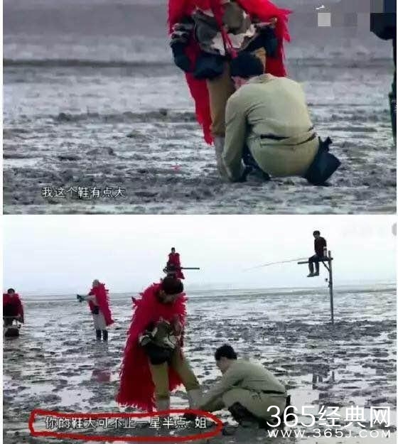 之前在《七十二层奇楼》录制的过程中,吴磊帮赵丽颖穿鞋子,也忍不住吐槽鞋子实在是太大了,而且大的不是一星半点,赵丽颖连女鞋都能大上这么多,穿男士的雨鞋自然是大到没边啦!