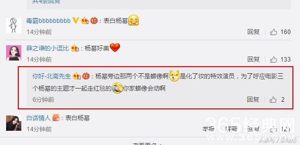 但是有网友就发现,杨幂身边的这两位,真是让人吓了一跳,和杨幂还很像呢,不过还是本尊好看。原来,杨幂旁边那两个是化了妆的特效演员,为了呼应电影三个杨幂的主题才一起走红毯的。