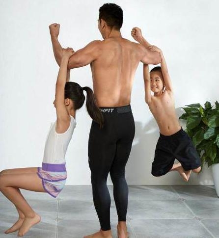 赵文卓和两个孩子一起健身,赵文卓不愧是武打明星,45岁还是那么有气魄,坚持健身保持身材。