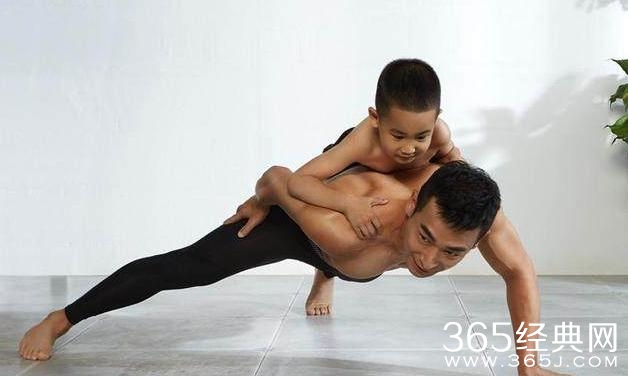 赵文卓可以单手俯卧撑,上面再加一个孩子。真不愧是习武之人,再看看这个角度,儿子长得很像赵文卓。