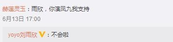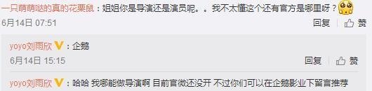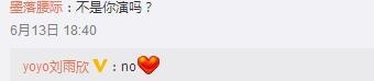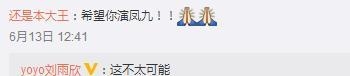 有人问刘雨欣会出演凤九吗,刘雨欣否认,还说自己不是制片人,在她这边推荐没有用,而且不知道会不会有自己的出演,这能说厉害了我的大企鹅,