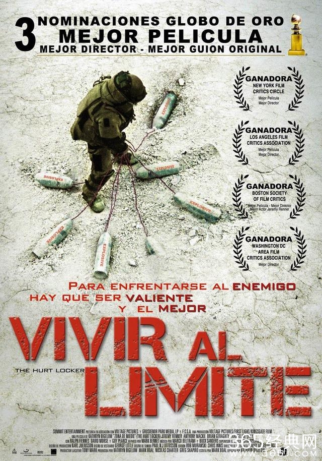 奥斯卡金像奖最佳影片,电影主要讲述了一组美国拆弹专家被派往巴格达执行任务的故事,大量移动镜头和仿纪实拍摄手法具有强劲的视觉冲击,几个拆弹段落像昂壮的鼓点密集敲打着观众的心扉,一个伊拉克少年是否被用作人体炸弹的小故事将全片推向高潮。