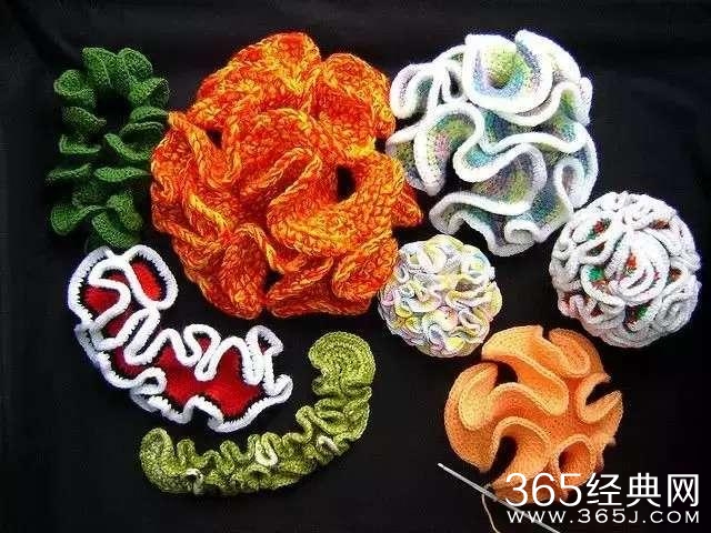 通过 Taimina 制造的以假乱真的毛线生物,你可以进一步感受双曲几何的神奇。我们一起来看一看这些毛线生命体吧!