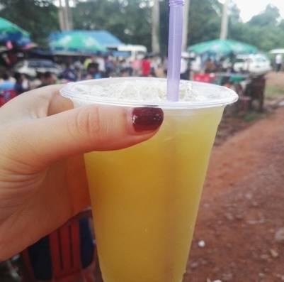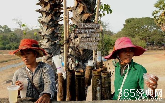 棕糖水是柬埔寨相当具有当地特色的一种饮品,就是把棕糖泡水饮用,味道有些烧焦的碳味。这样一杯一般0.5美元一袋,粽糖水很甜,放入竹筒中,入口有冰凉的口感。下午小吴哥内非常热,来上一袋还是很舒服的,但是别喝太多,因为糖分还是挺高的。