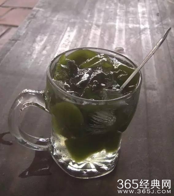 最后要提的是属于越南自身的传统饮料,它叫「Sương sâm」,中文翻成蔘露。这是一种和仙草很像的东西,除了外观是绿色的之外,其余和仙草看来几乎一模一样,它也和仙草一样本身并没有特别的味道,得要加上糖水才会比较好喝。