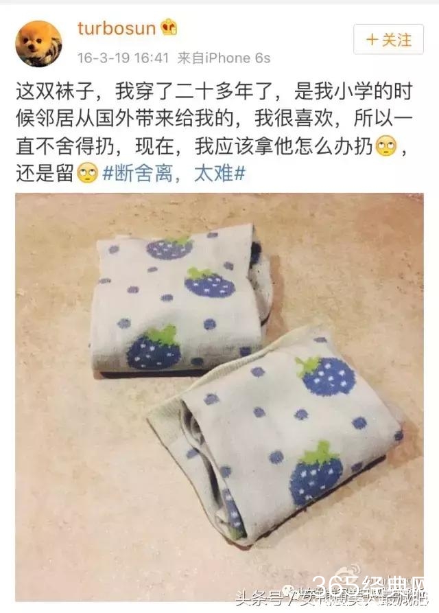 孙俪之前在网上晒过自己穿了20多年的袜子
