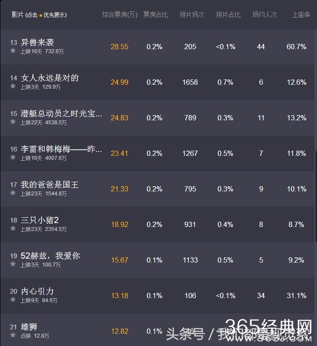 最值得一说的是印度电影摔跤吧爸爸这部,都上映一个多月了,热潮依旧没有退去,昨天排片场数1500场,票房收获1千万。上座率高达百分之23.9。