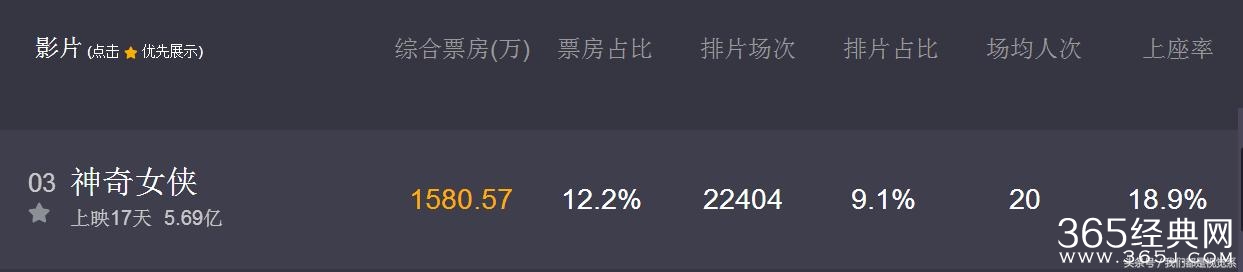 神奇女侠以1千5百万,排在第三名。上映17天,累计票房达到5.69亿,口碑不错,却败给了木乃伊。
