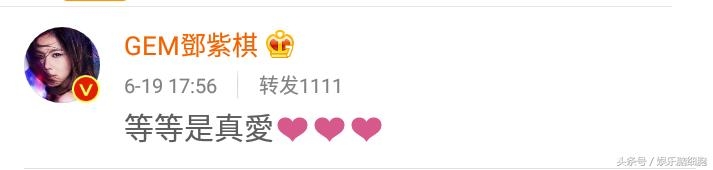 随后邓紫棋也转发微博,肯定了等等的真爱!