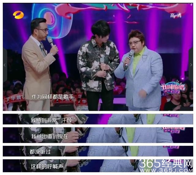 看到年轻歌手华晨宇受到粉丝这么狂热的呼喊,资深歌手同时也是本场主持人之一的韩红坐不住了,半真半假,明显含着酸意地说,我为之汗颜,出道至今从没有听过这样的呼喊!