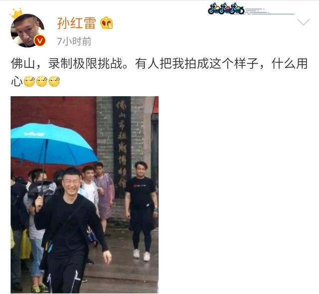 孙红雷在佛山录制极限挑战的时候被人偷拍成这个样子,孙红雷微博称“什么用心啊”,可网友评论更精彩,这张不错了,那是你没见过下面这几张,哈哈哈,笑死了!!!