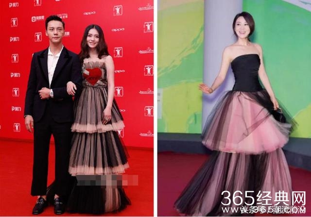 去年的上海电影节上,闫妮也穿过类似的蛋糕裙,侧分低扎发,对镜甜笑的她超美,超有气质的!