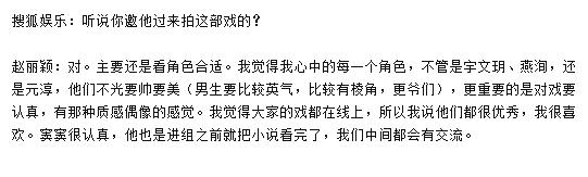 赵丽颖也是大赞窦骁在进组之前就把小说给看完了,是一个对角色很认真负责的人,他们在一起拍摄时中间也会有交流~