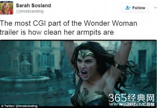 ▼同时《神奇女侠》盖尔加朵那光溜溜的干净腋下,也意外成为了网友讨论的话题,不少人对于神奇女侠超干净的腋下感到相当不合理。