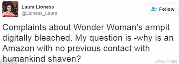 ▼甚至有网友帮电影中的神奇女侠PS上一点腋毛,看起来似乎没有什么违和感,神奇女侠则是感觉起来更野性。
