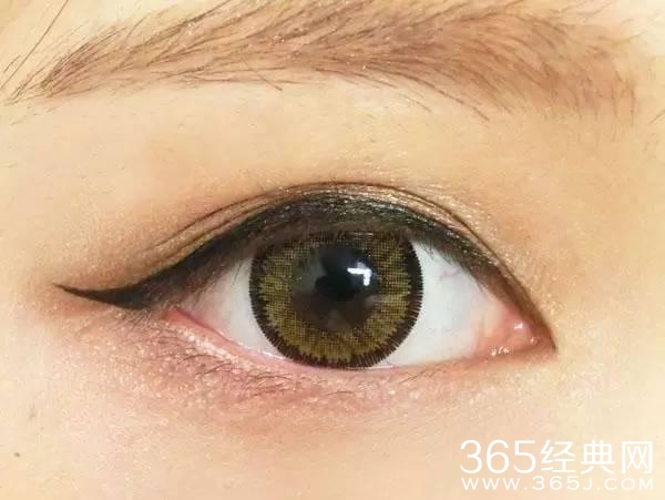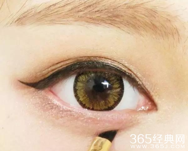 眼影部分完成,然后眼线,尾部上扬一点~用的眼线液笔