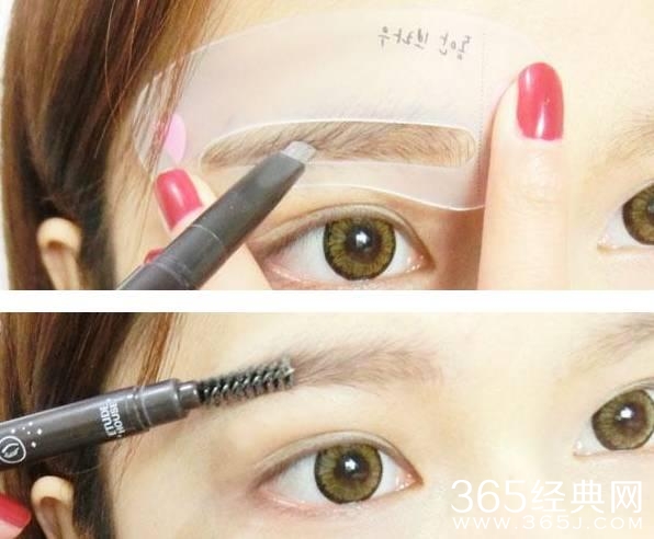 很多mm觉得眉毛好难画,其实眉毛还是很重要的,尤其是对中分mm来说。可以借助眉卡,来画眉毛,然后画完之后可以就着形状,把眉毛照着修~画完之后用眉笔另外一头梳理一下。